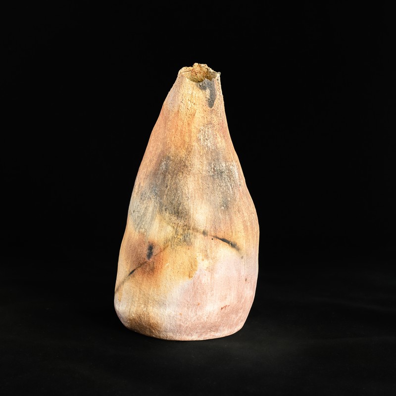 Buste de femme en grès rouge enfumé avec papier journal incrusté